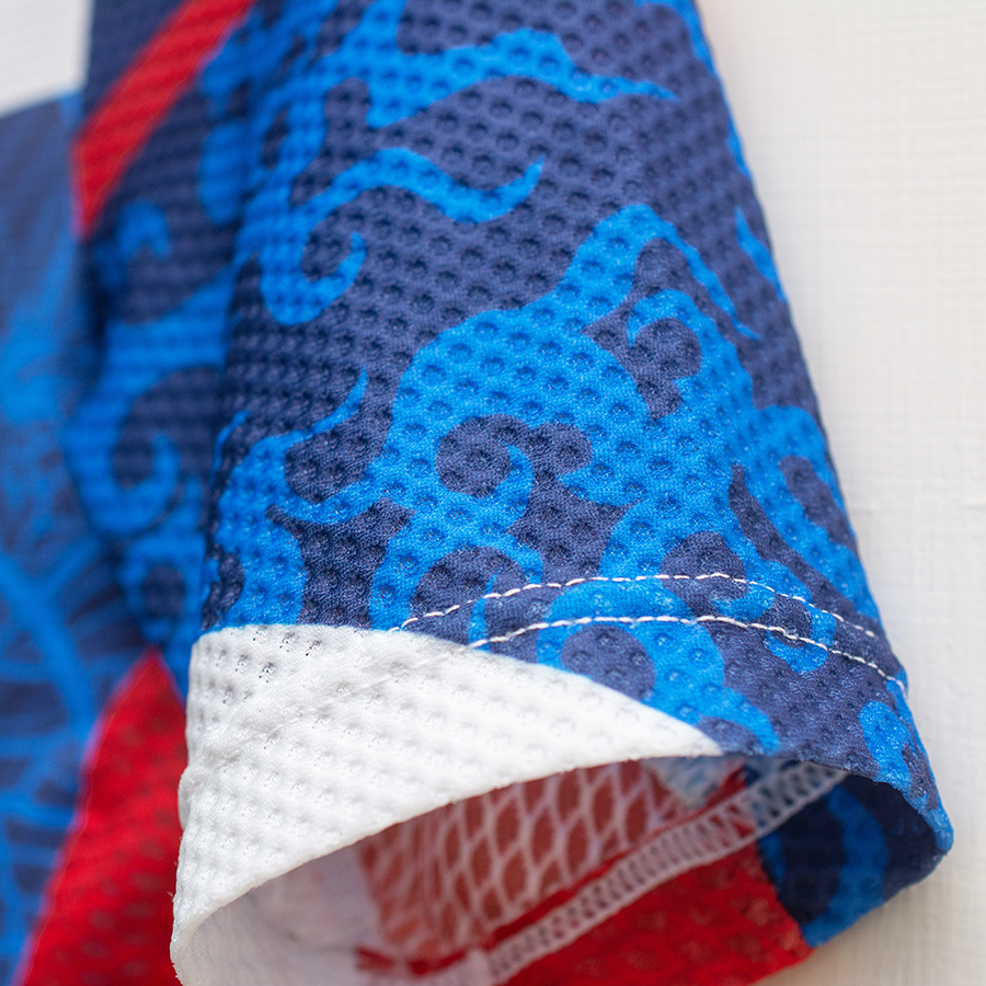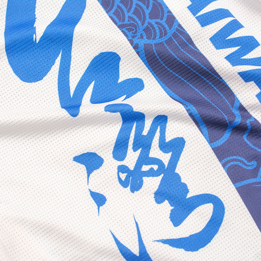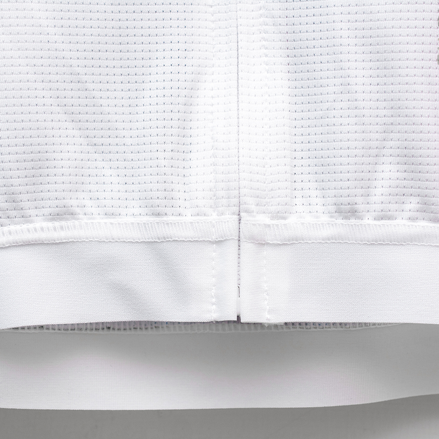 大身、袖臂、側片部位各採用義大利進口透氣輕簿彈力布;下擺鬆緊帶採用義大利MAB 鬆緊帶;輕質透氣、兼顧肌膚舒適度及緊緻貼身剪裁的車衣