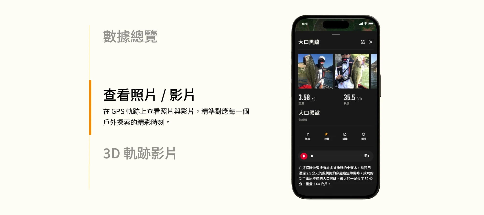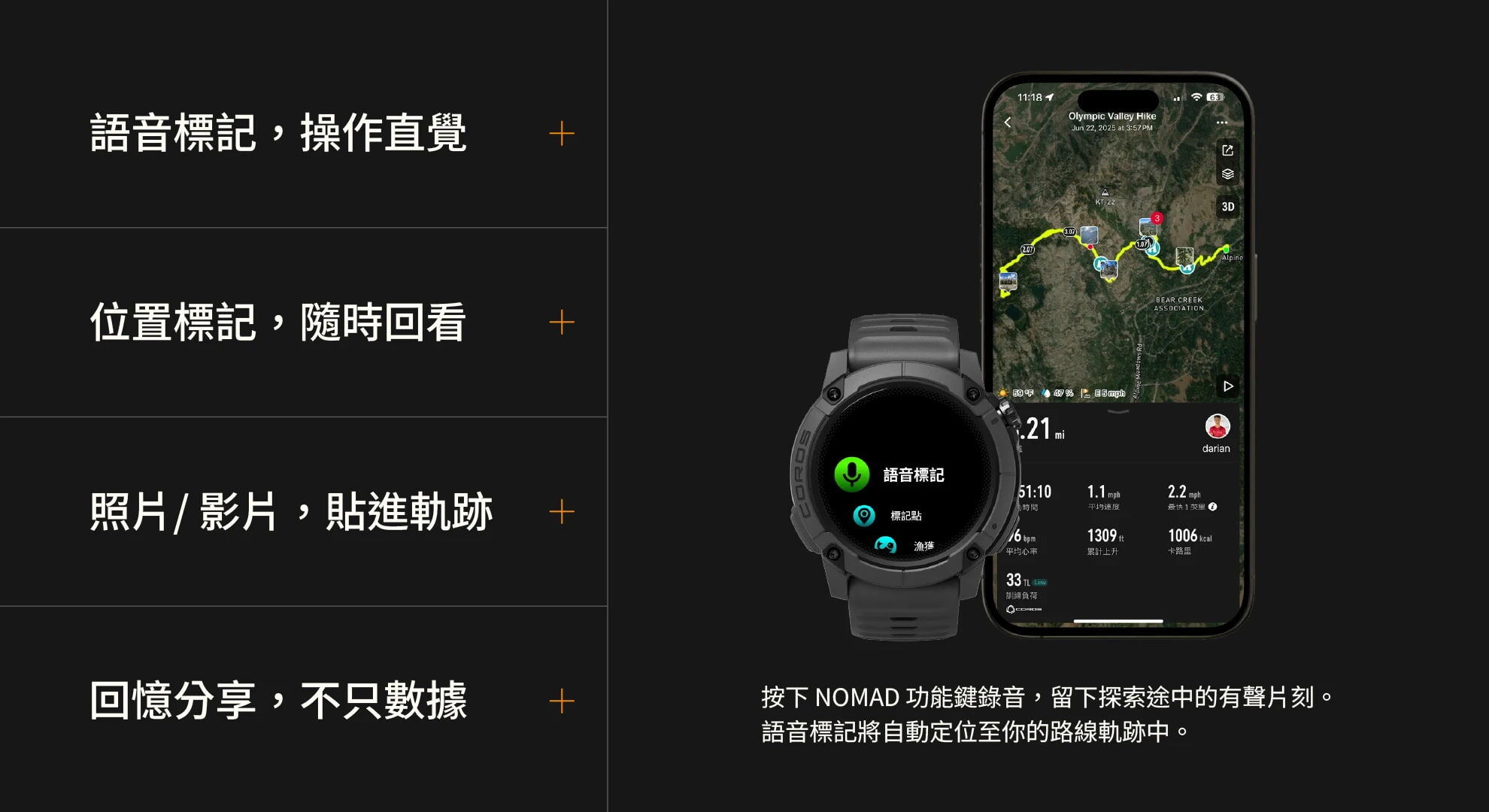 ・探索筆記功能,將照片、影片、語音同步於軌跡紀錄