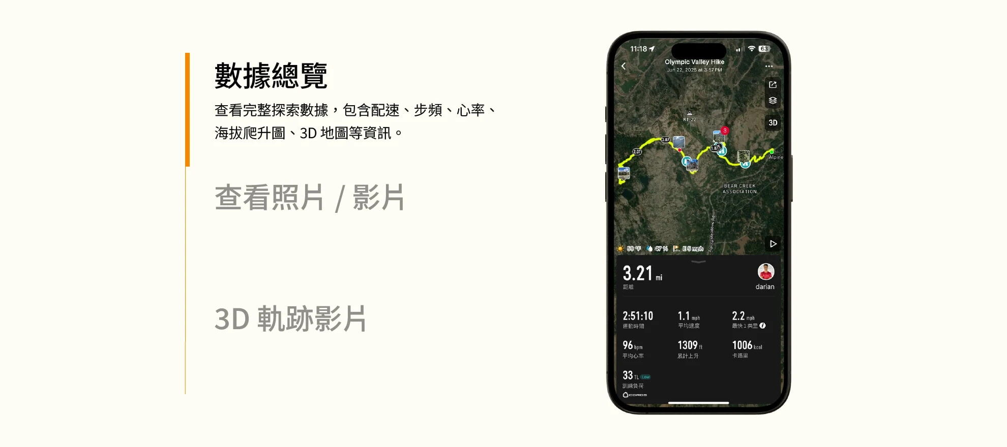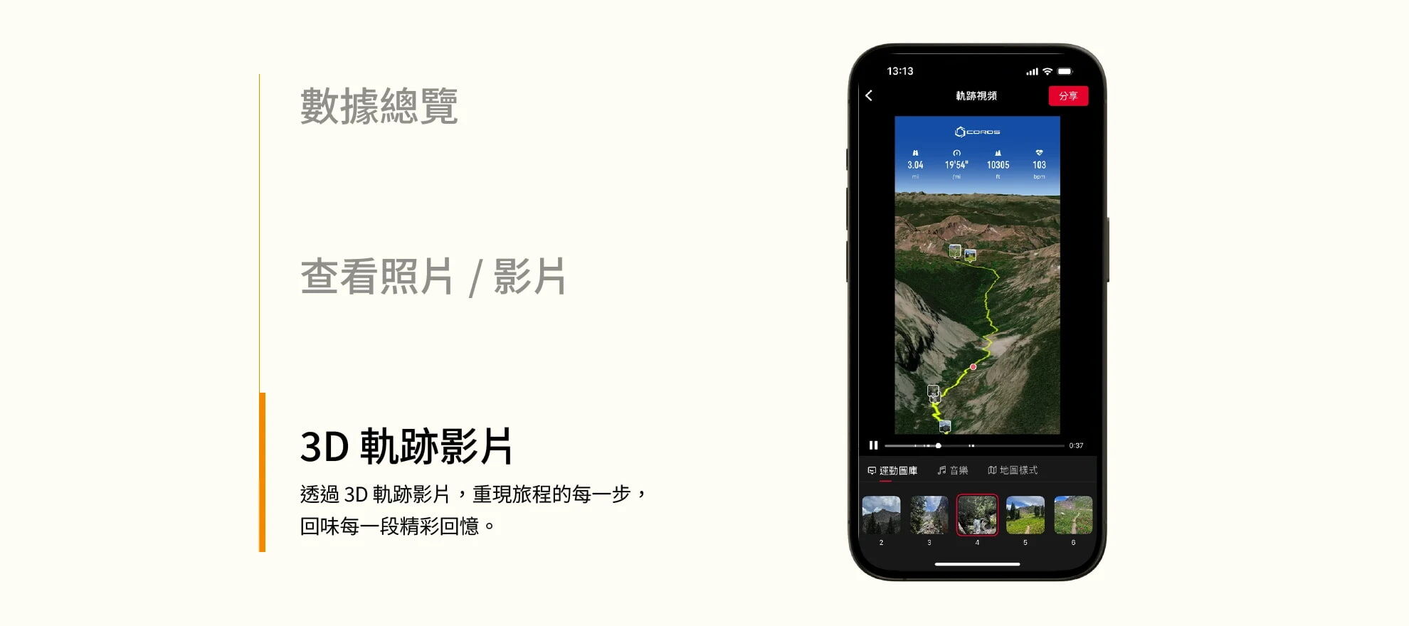 ・搭配 COROS App,3D 軌跡影片重現每段探索回憶