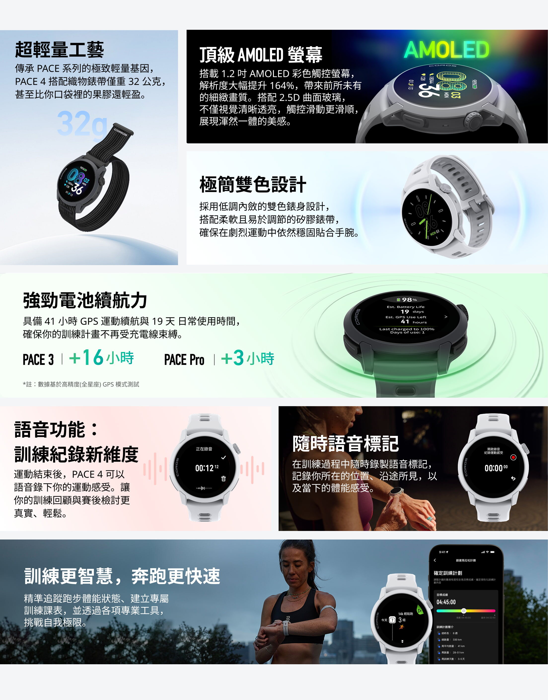 • COROS PACE 4 競技運動錶 使用說明書 繁體中文版 請點選連結觀看:https://support.corostw.com/user-manual/pace4-manual