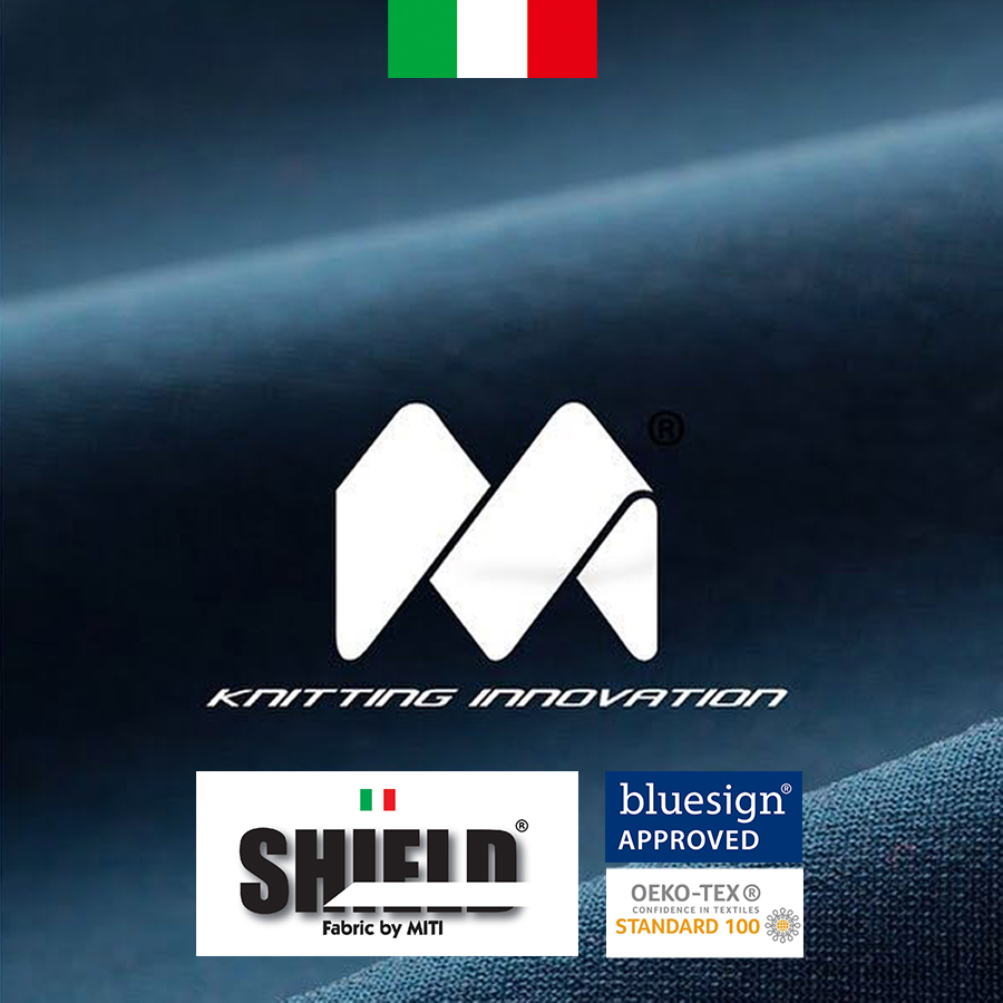 質感優良的台灣布料結合義大利M.I.T.I SPA 通過藍色認證(bluesign®APRORRVED)、環保紡織品標章(OEKO-TEX® l00)的環保認證的布料;提供舒適又安心的穿著。