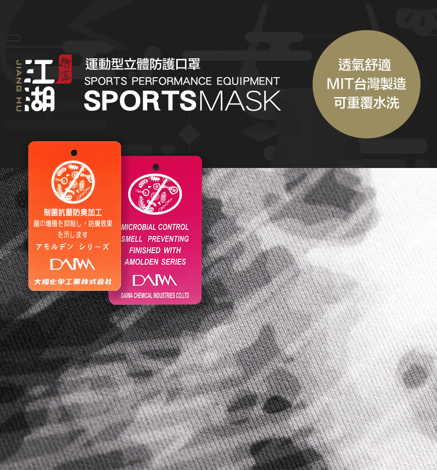 江湖跑堂即日起推出運動型立體防護口罩!全系列13款;無論是色彩鮮明、風格獨特的圖型花色或是極簡、低調的素黑與素白,各給予您不同的配載風格及穿搭樣貌。
