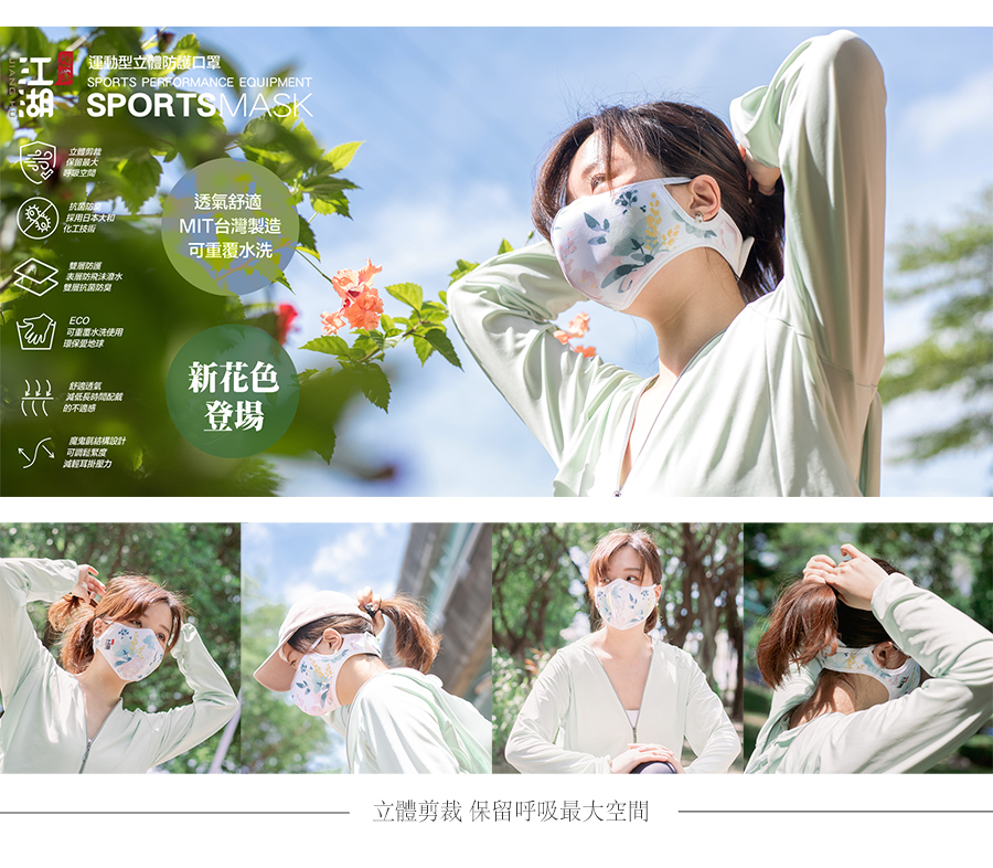 江湖跑堂即日起推出運動型立體防護口罩!全系列13款;無論是色彩鮮明、風格獨特的圖型花色或是極簡、低調的素黑與素白,各給予您不同的配載風格及穿搭樣貌。