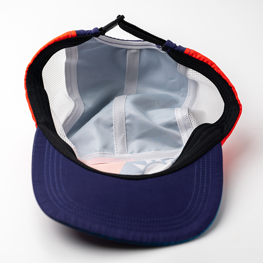 帽款採用五分割立體設計,使用柔軟輕盈具防潑水的布面;兩側使用透氣網孔,抵擋小雨或陽光的同時仍能保有局部的透氣;可調式的扣帶,可依配帶者習慣做調整,配載更舒適!