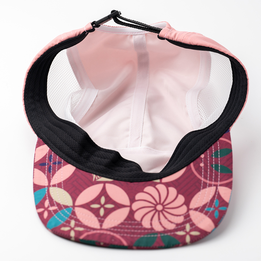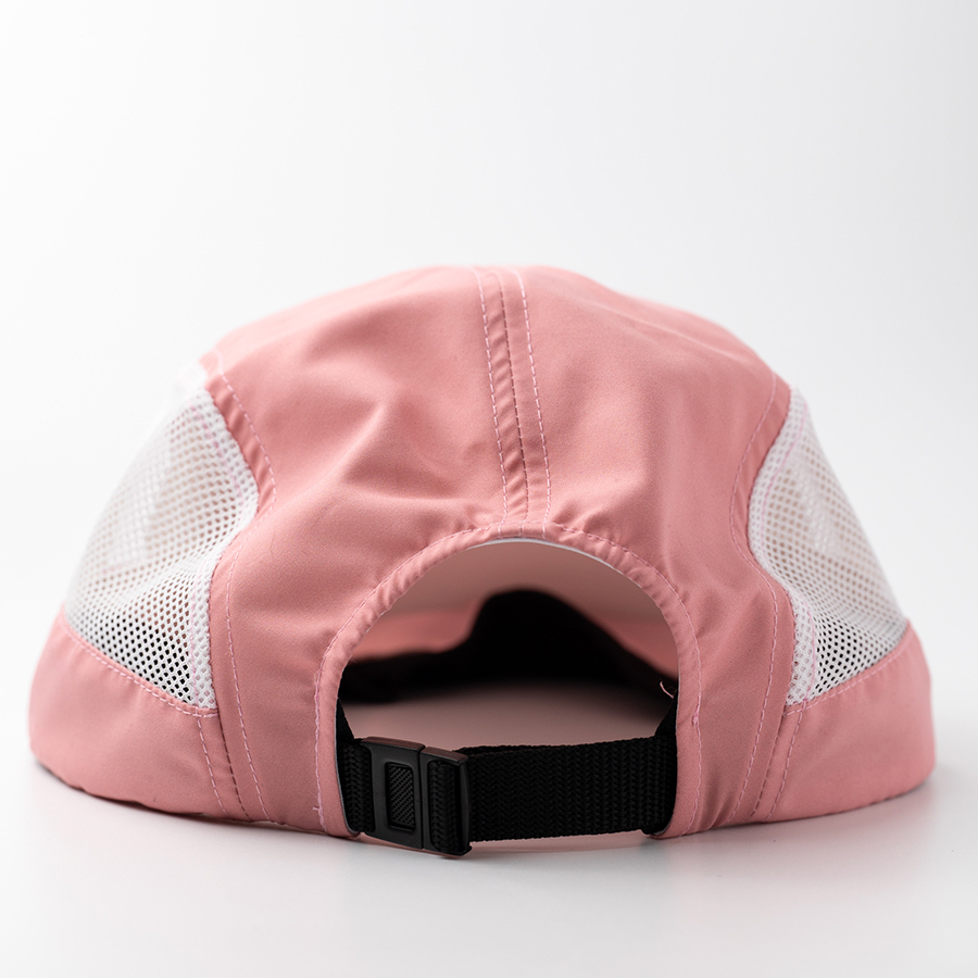 帽款採用五分割立體設計,使用柔軟輕盈具防潑水的布面;兩側使用透氣網孔,抵擋小雨或陽光的同時仍能保有局部的透氣;可調式的扣帶,可依配帶者習慣做調整,配載更舒適!