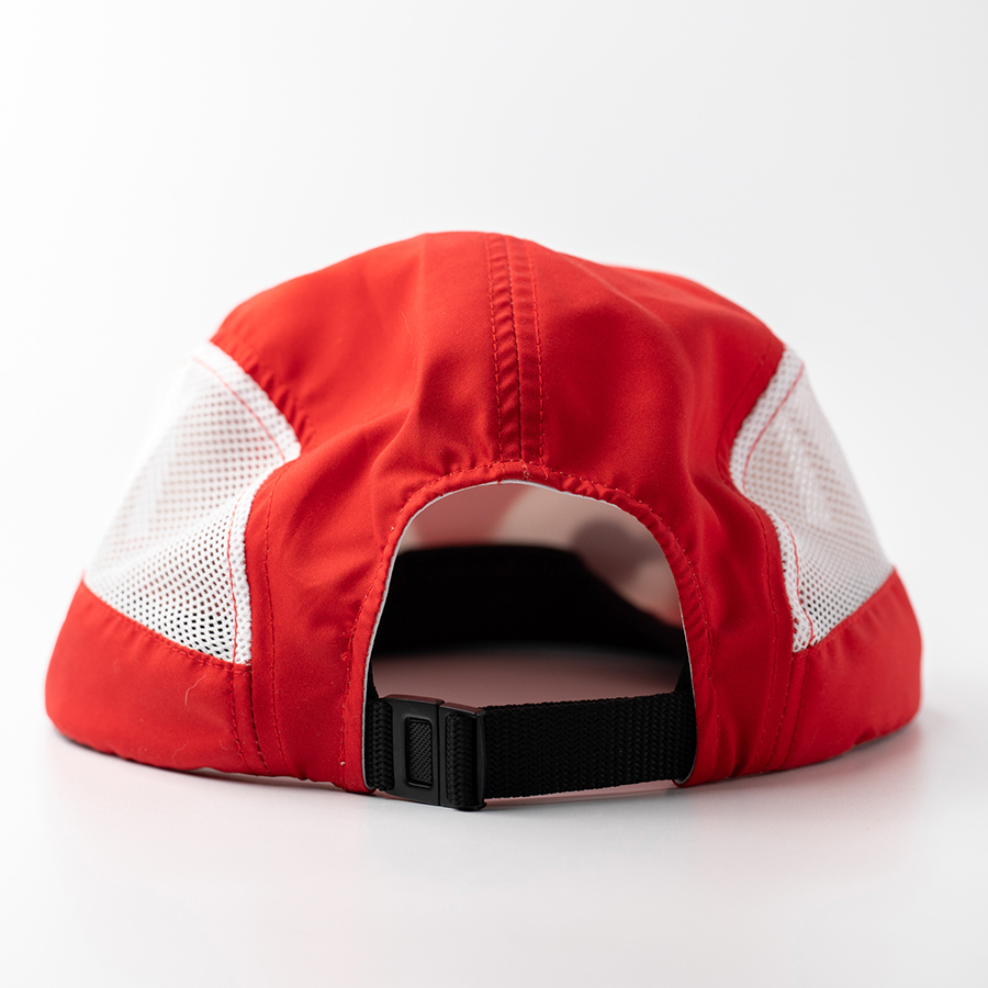 帽款採用五分割立體設計,使用柔軟輕盈具防潑水的布面;兩側使用透氣網孔,抵擋小雨或陽光的同時仍能保有局部的透氣;可調式的扣帶,可依配帶者習慣做調整,配載更舒適!