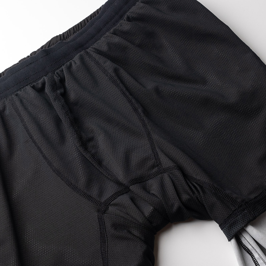 配有舒適具伸縮彈力四角內襯的二合一運動短褲,提升跑步或運動時的局部包覆與支撐及長時間舒適度!