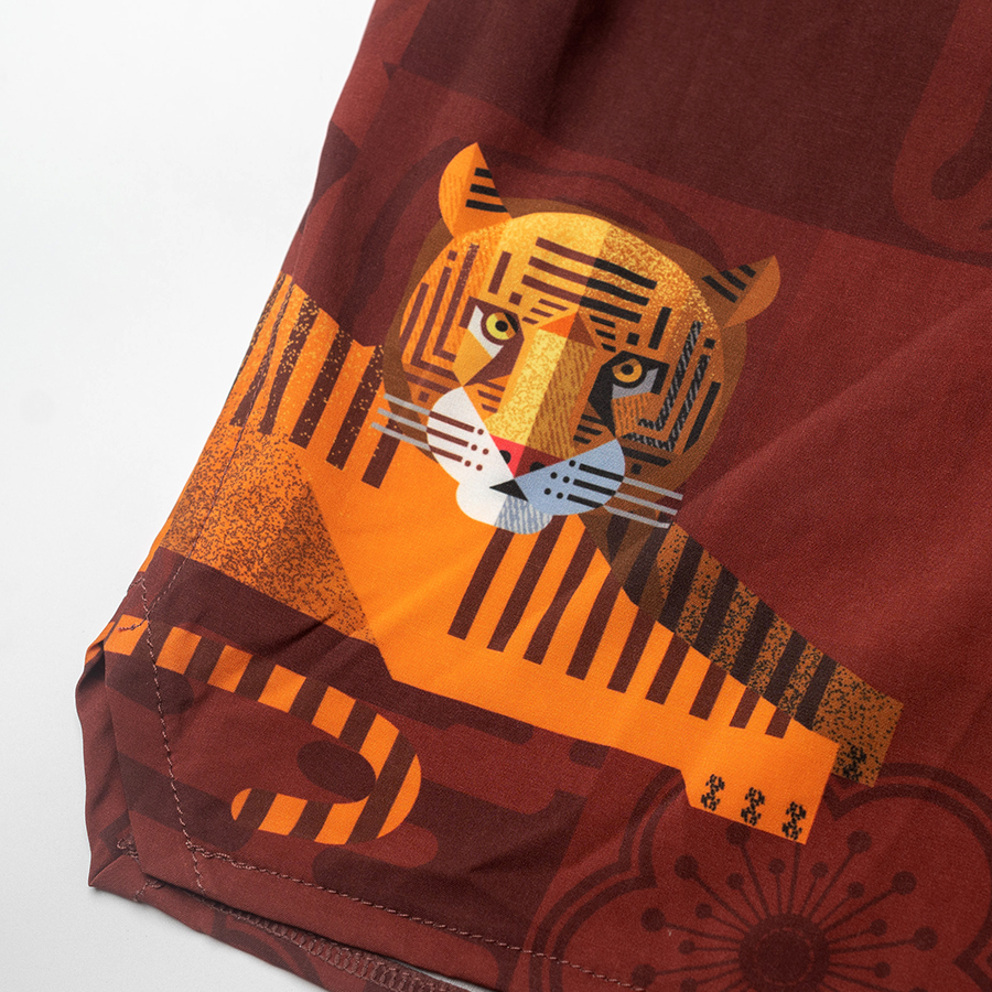 江湖跑堂《福虎生風》二合一運動短褲︱緋紅