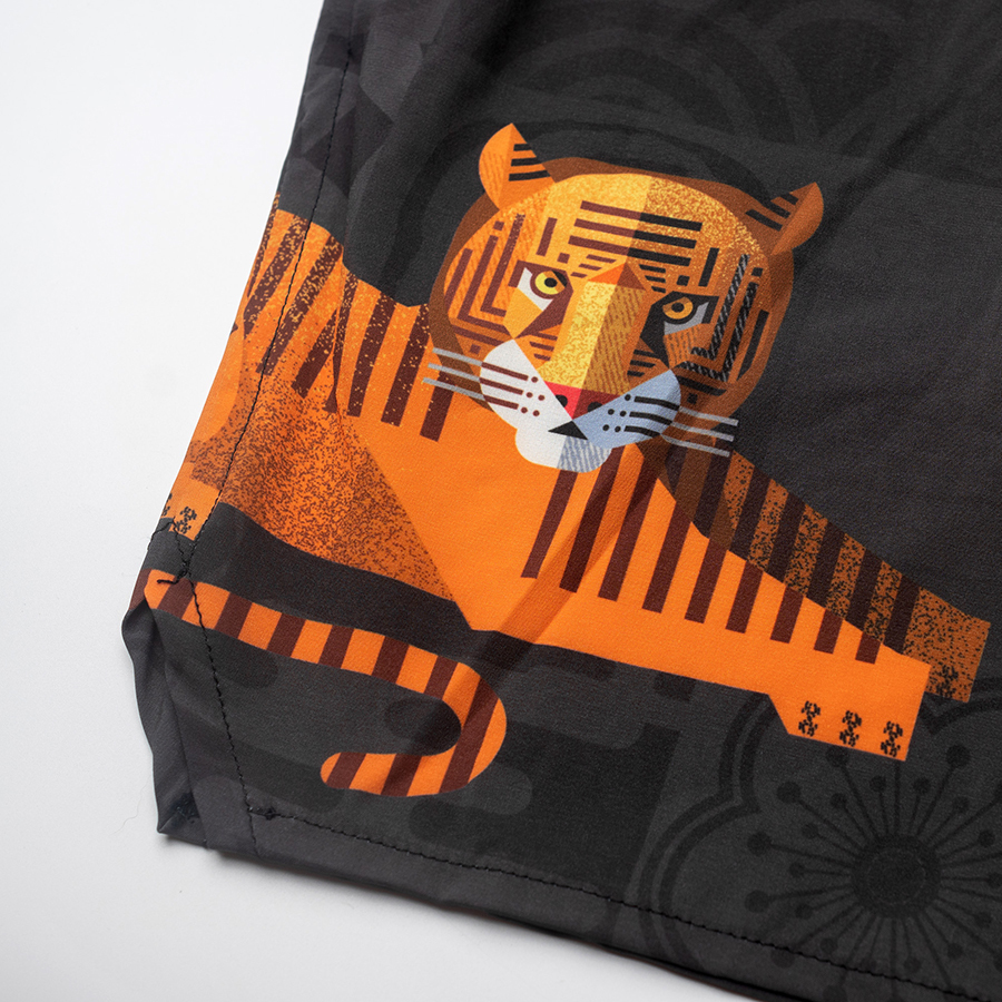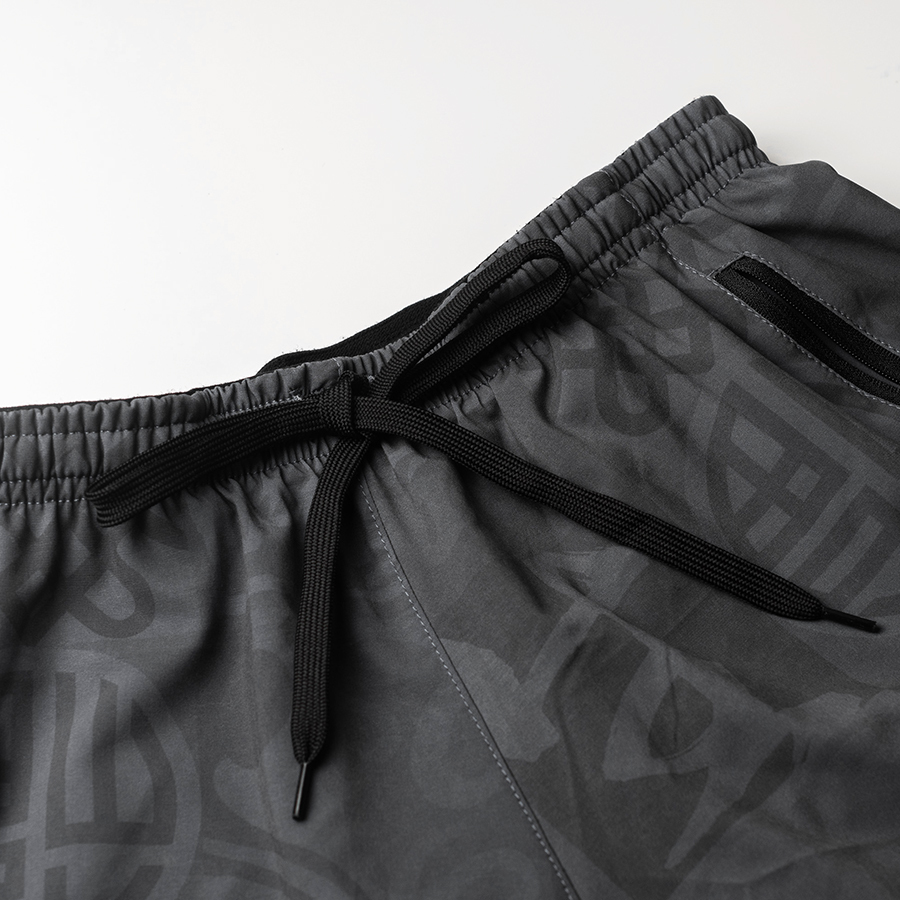 江湖跑堂《福虎生風》二合一運動短褲︱鉑黑