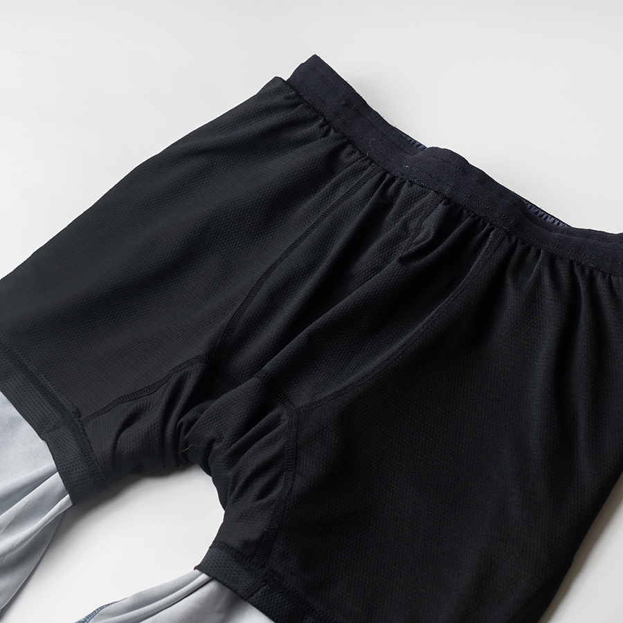 配有舒適具伸縮彈力四角內襯的二合一運動短褲,提升跑步或運動時的局部包覆與支撐及長時間舒適度。