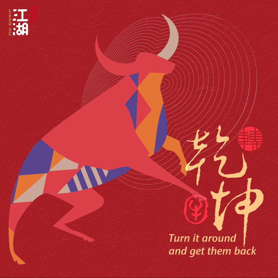 對比強烈而鮮艷的牛年圖騰配色,為新年增添了更多喜氣!融入隱喻太極形象的動感線條後,張力滿分牛氣沖天,世界因我們的努力而改變,讓我們一起成就最牛最酷的自己吧 !