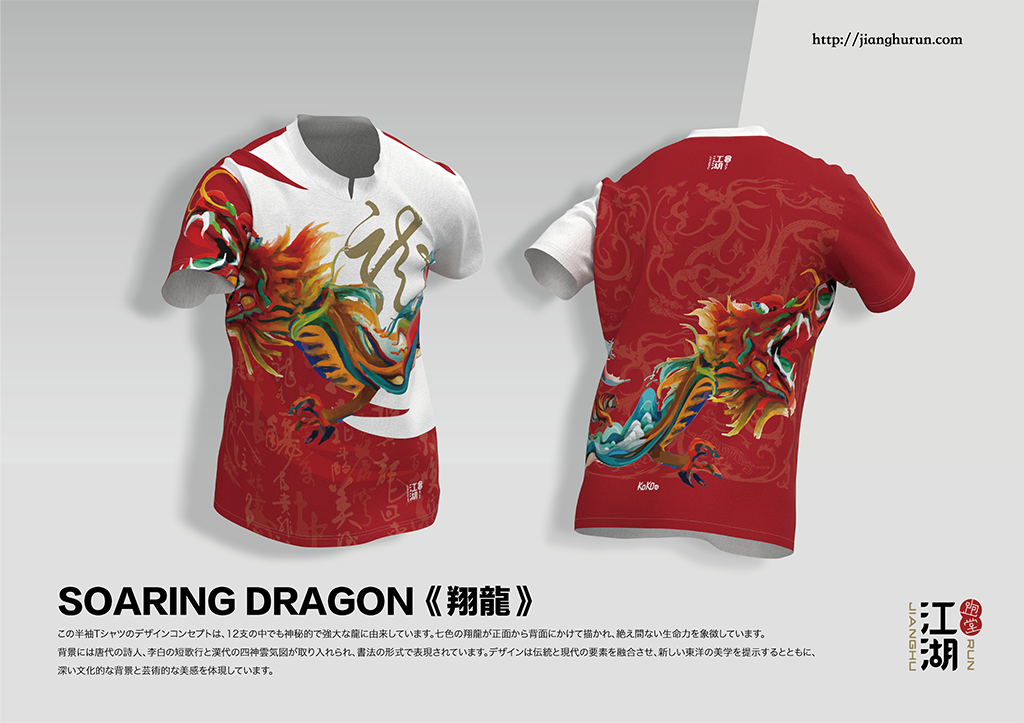 江湖跑堂《翔龍系列》圓領短袖時尚跑服 | 赤龍