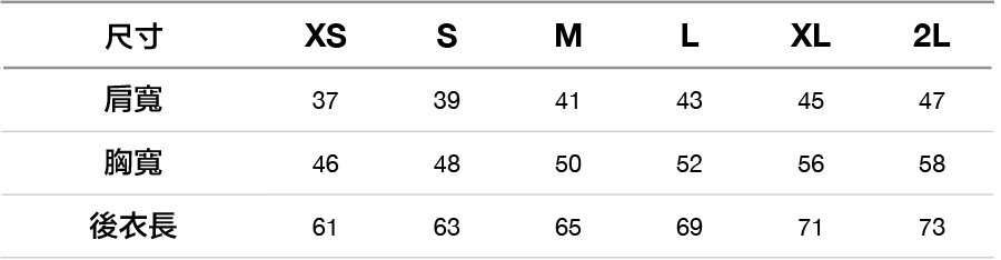 .尺寸表為商品平放測量,以公分(cm)為單位。